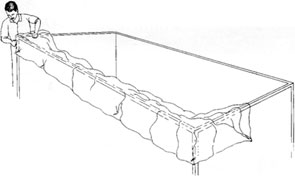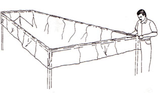 Metal profiller takılır ve yerine monte edilir. İki kenardaki gerdirme kolonları ile istenen yükseklilğe sabitlenir.